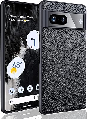 NZN Google Pixel 7 Leather Case, Genuine Leather, Lychee Grain, Cell Phone Case for Women and Men[Anti-Fingerprint], Shockproof Case for Pixel 76.3 Inches - Black