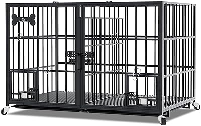 aboxoo 4248 inch Heavy Duty Metal Dog Crate for 2 DogsLarge Dog,All Metal Open Top Stackable,Dog Kennel Indoor with Wheels,Floor Grid, Tray, Divider and Feeding Bowl